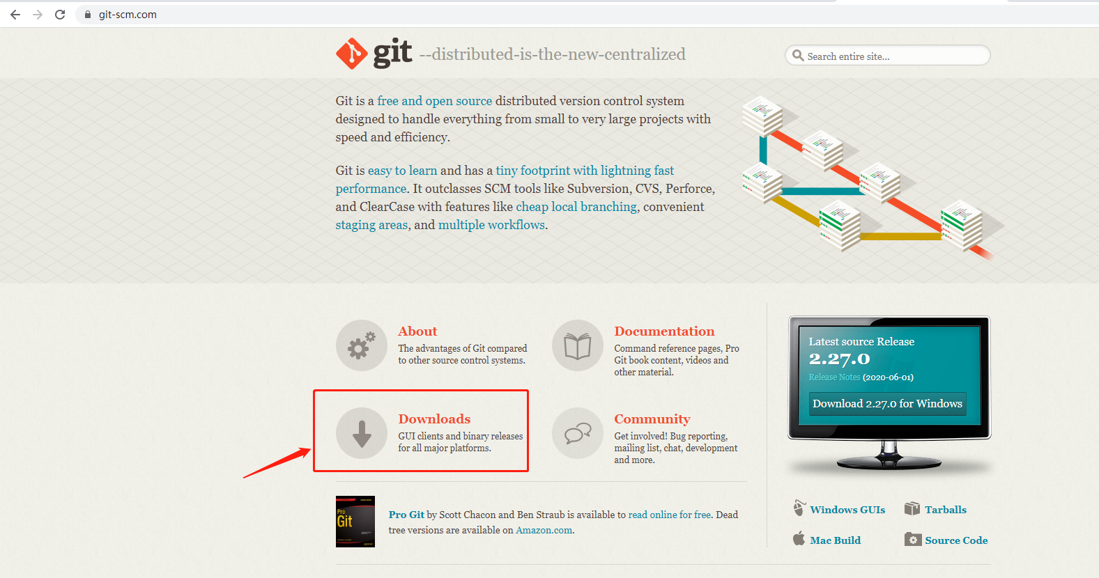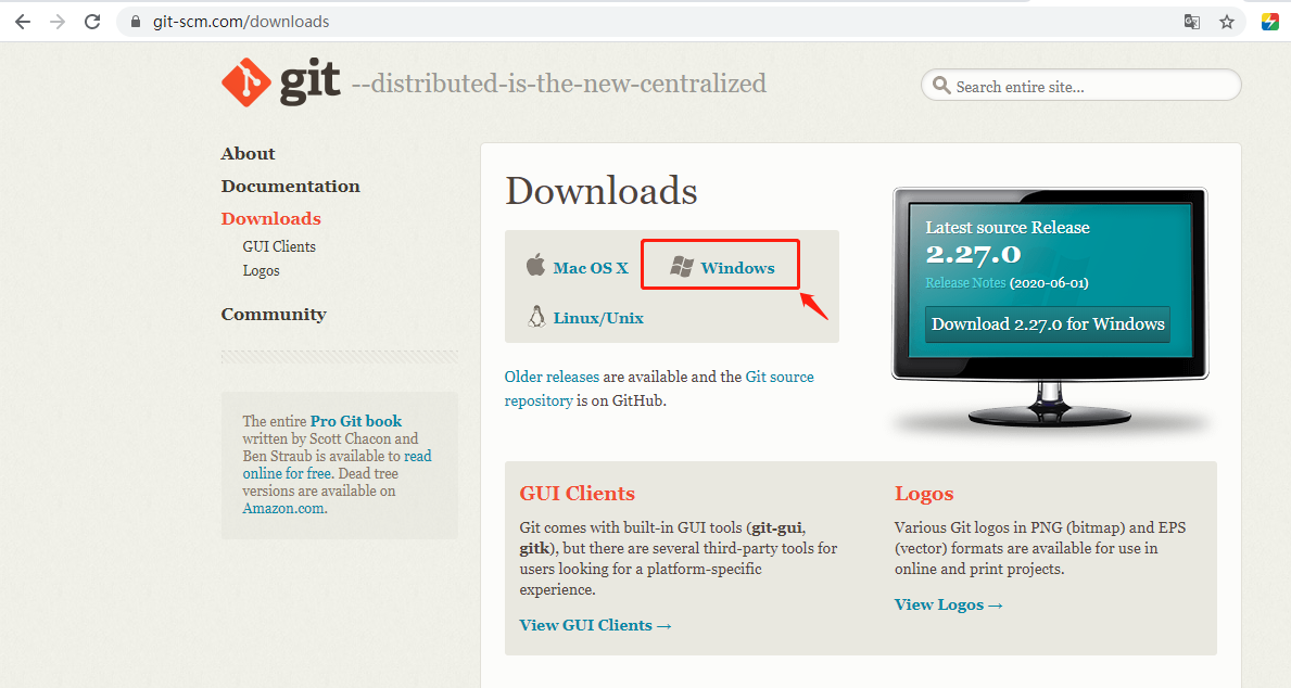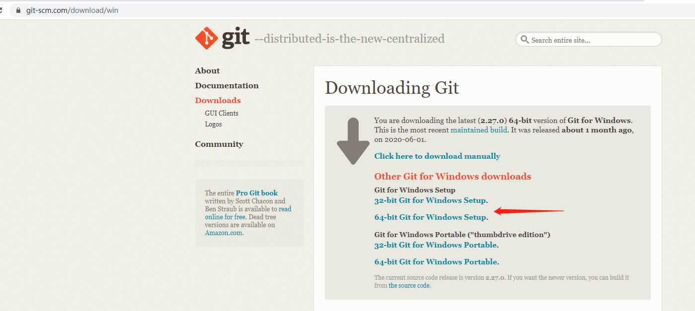 官方地址为:https://git-scm.com/ (根据自己电脑版本进行下载)