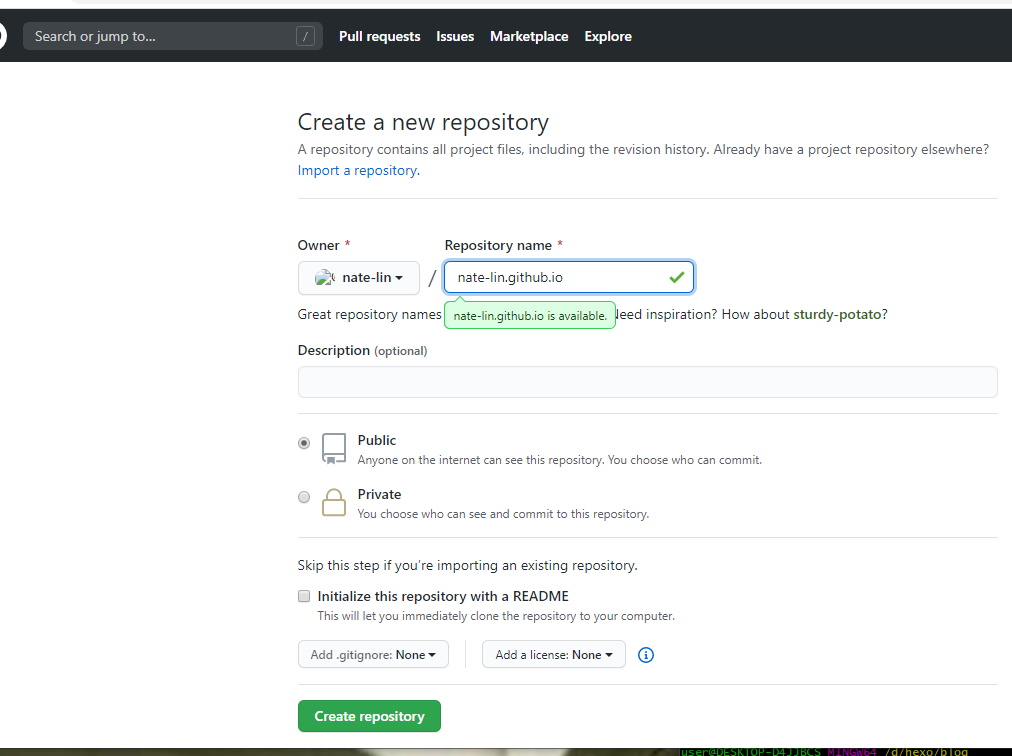 1.Github创建一个新的仓库 YourGithubName.github.io