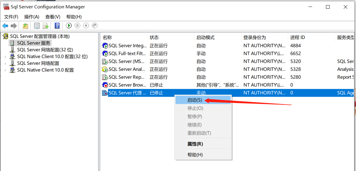 28、选择MSSQLSERVER,启动这个服务,然后就可以的登陆。